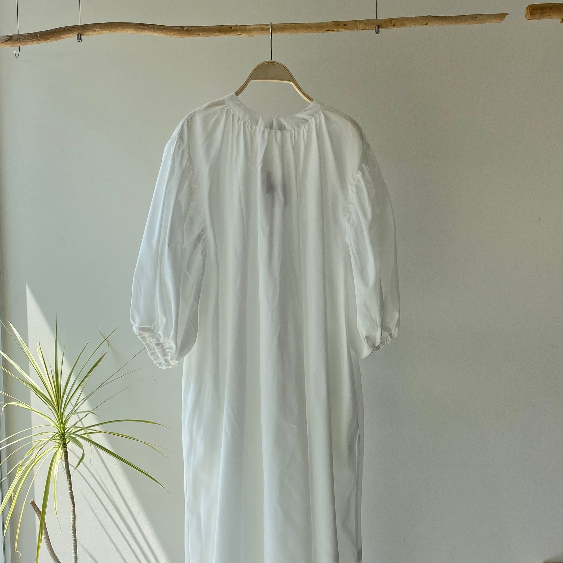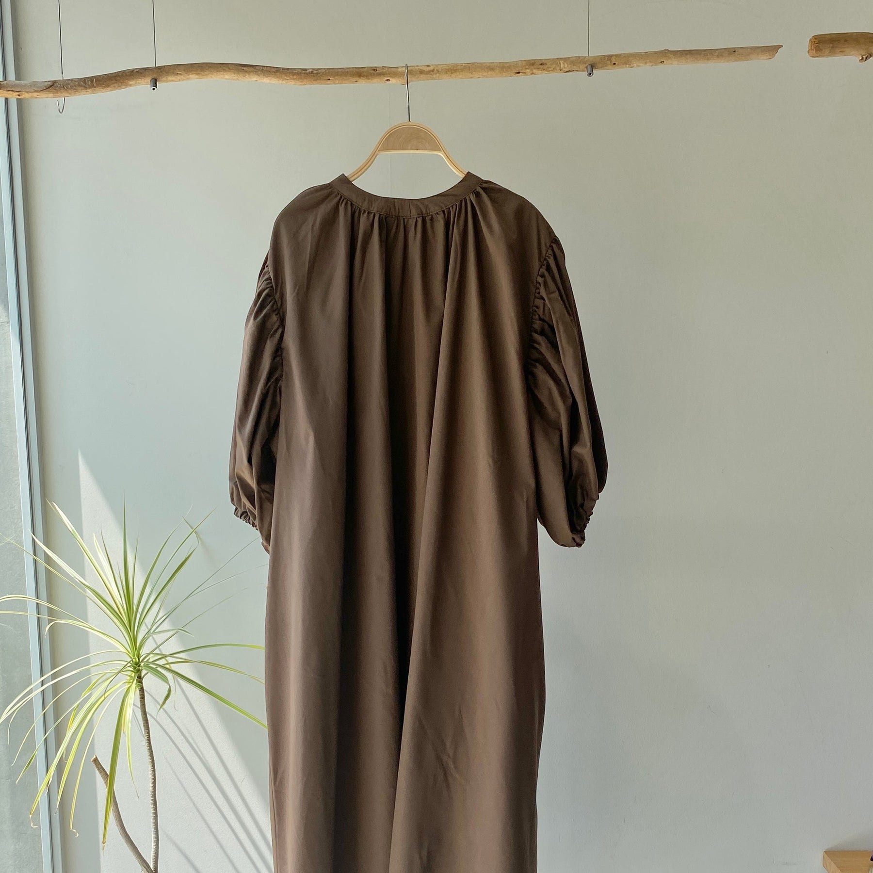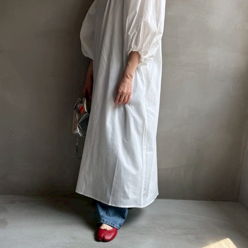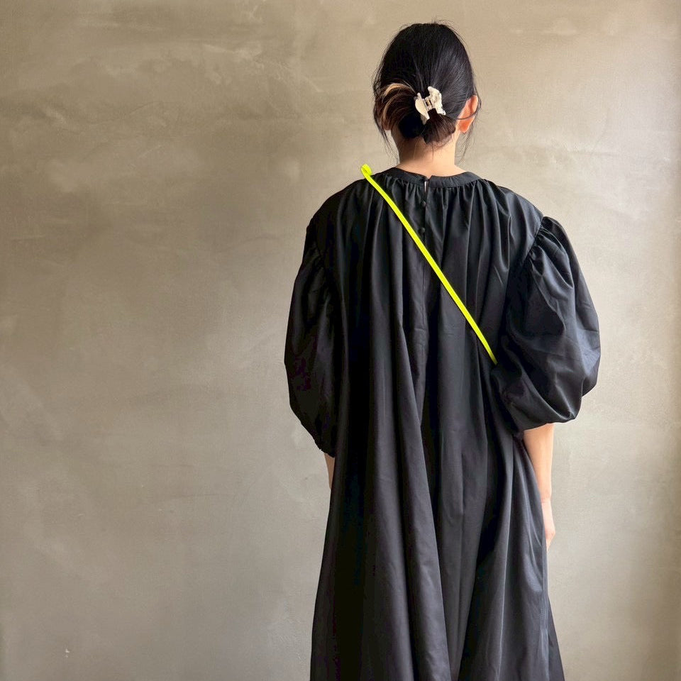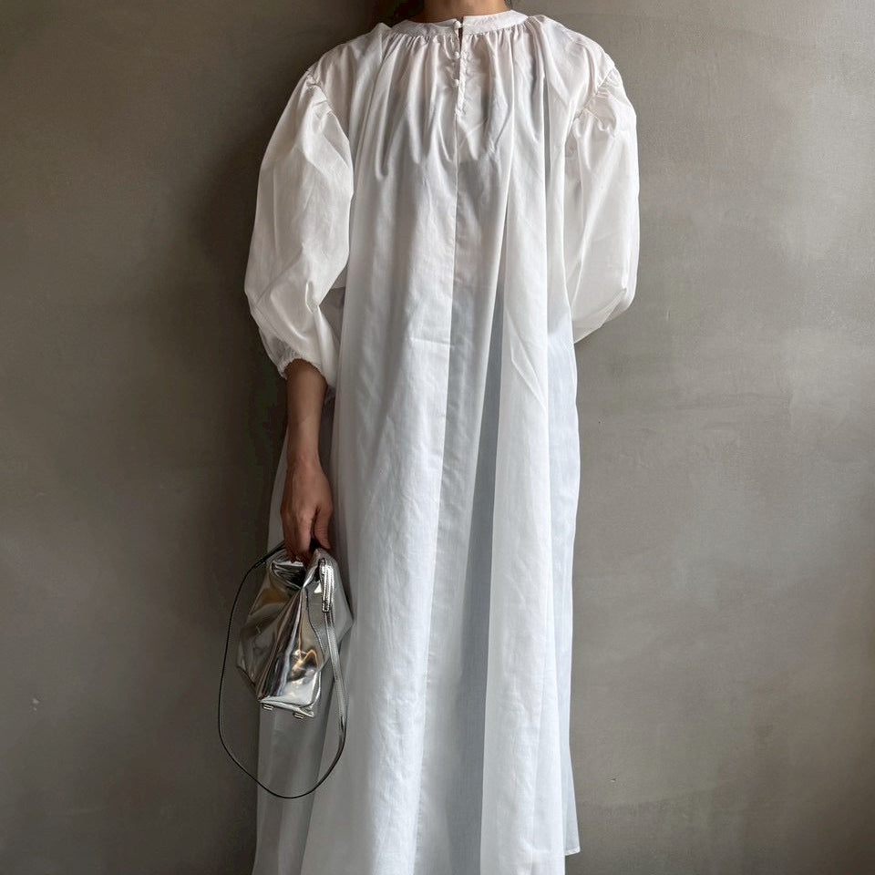 ゆったりリラクシーなワンピース首元にギャザーを寄せて