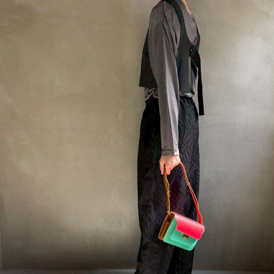 ワードローブの鮮度を上げてくれる一枚です背中のベルトで3段階にサイズ調節が可能