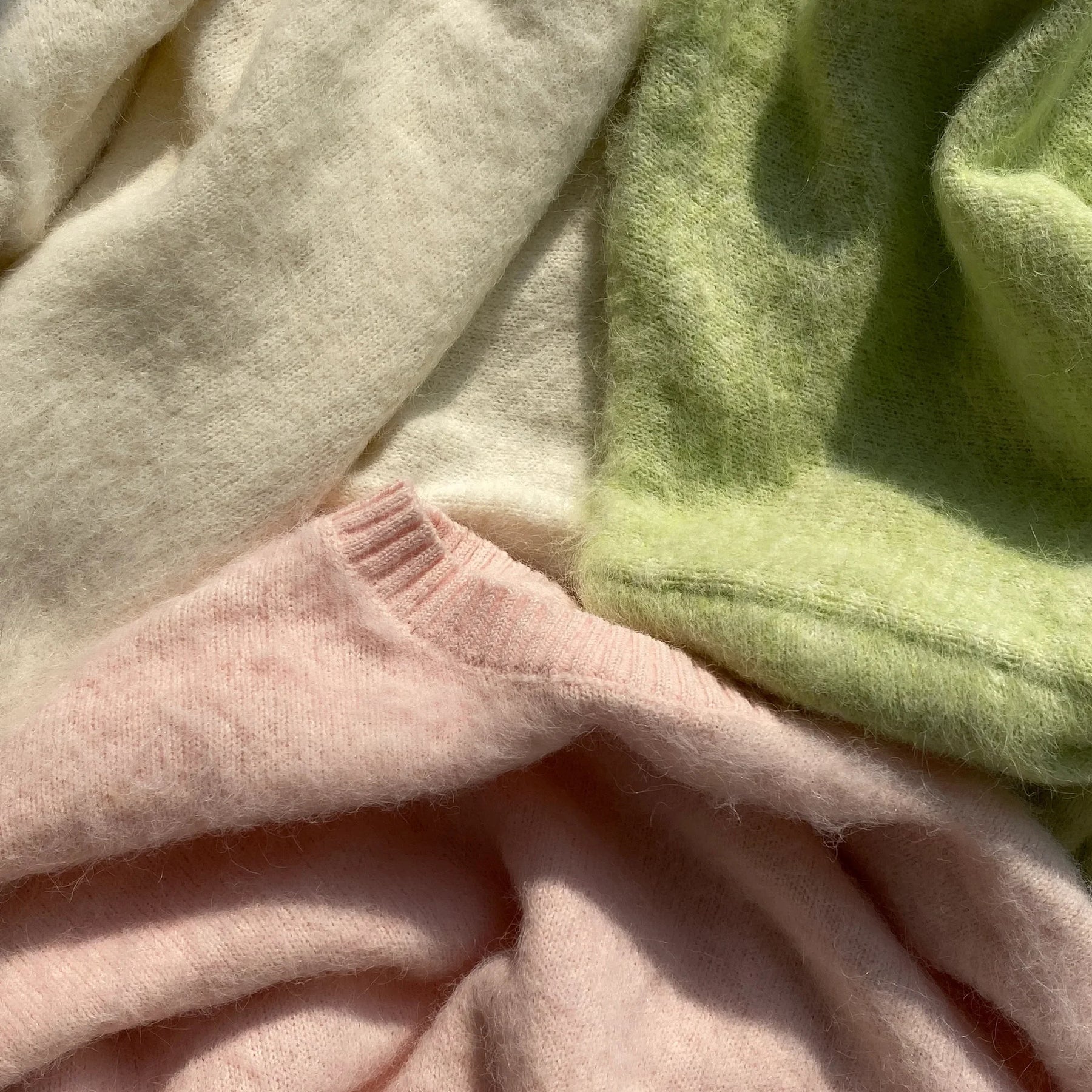 ふわっと軽くて暖かなモヘアタッチ素材を使用した、
