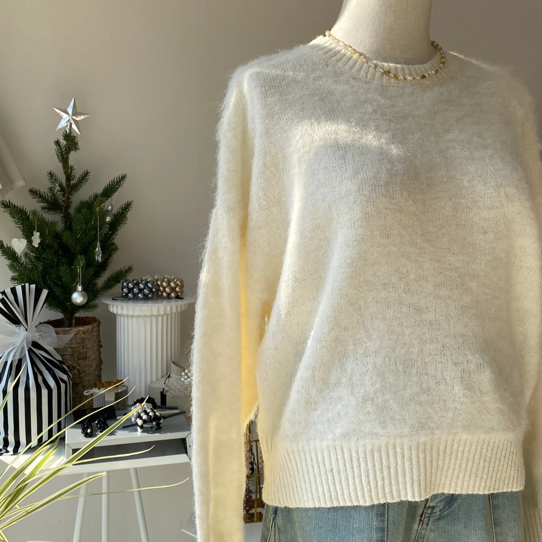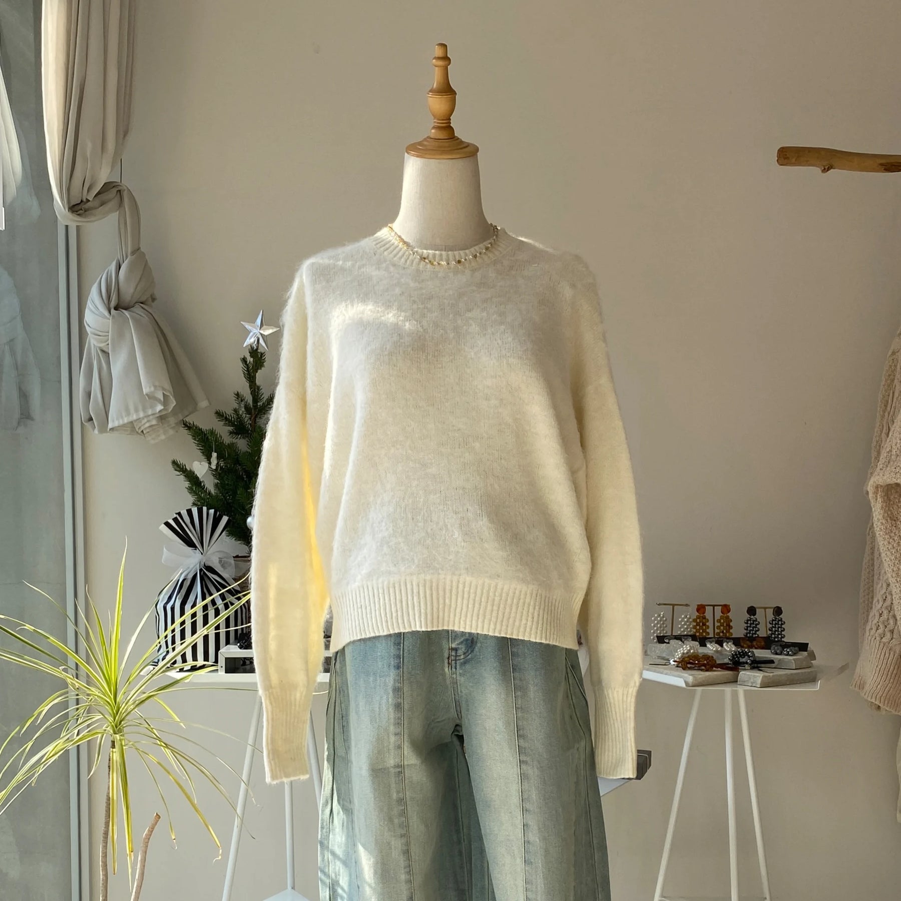 - 【ハモミシノオトナフク】Mohair crew neck pullover