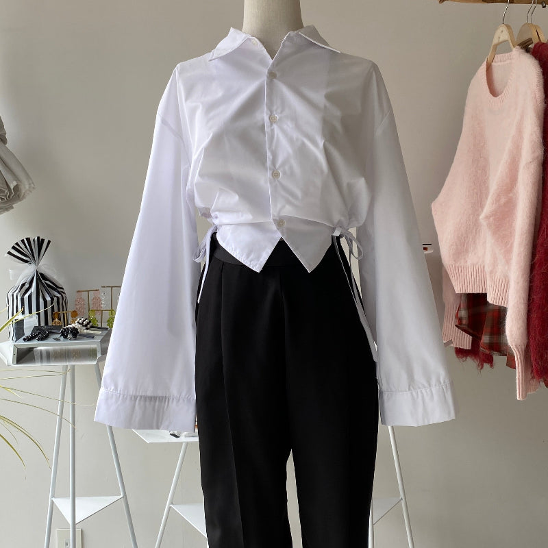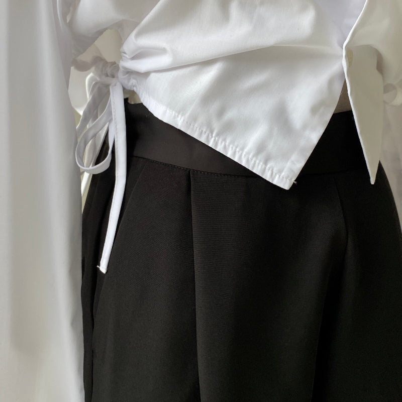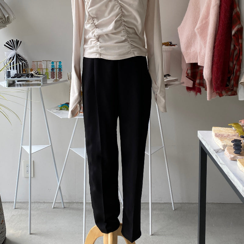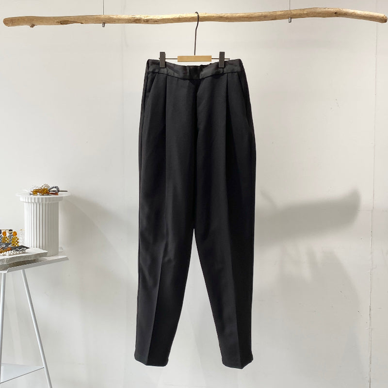 - 【ハモミシノオトナフク】Satin waist tuck tapered pants