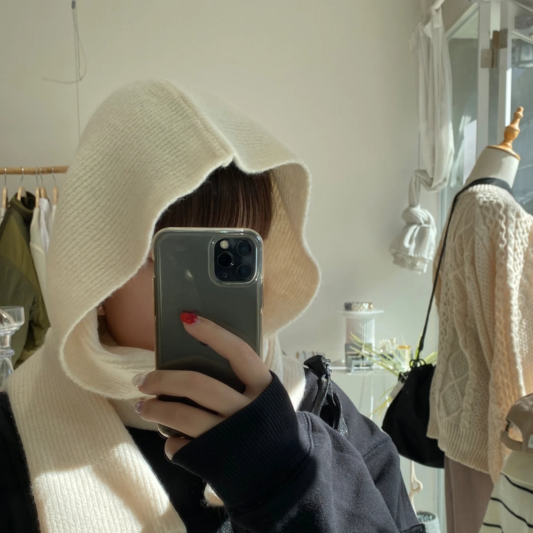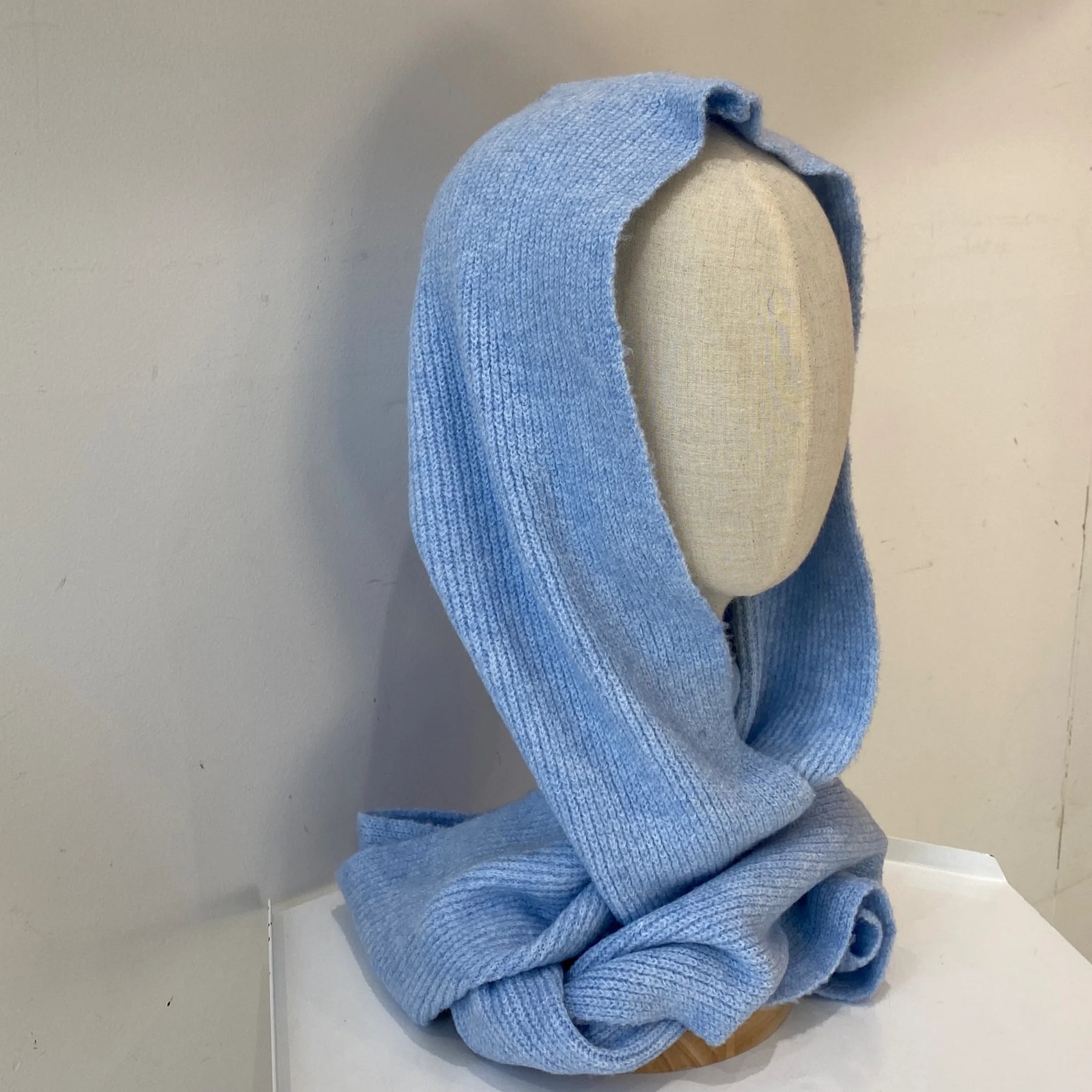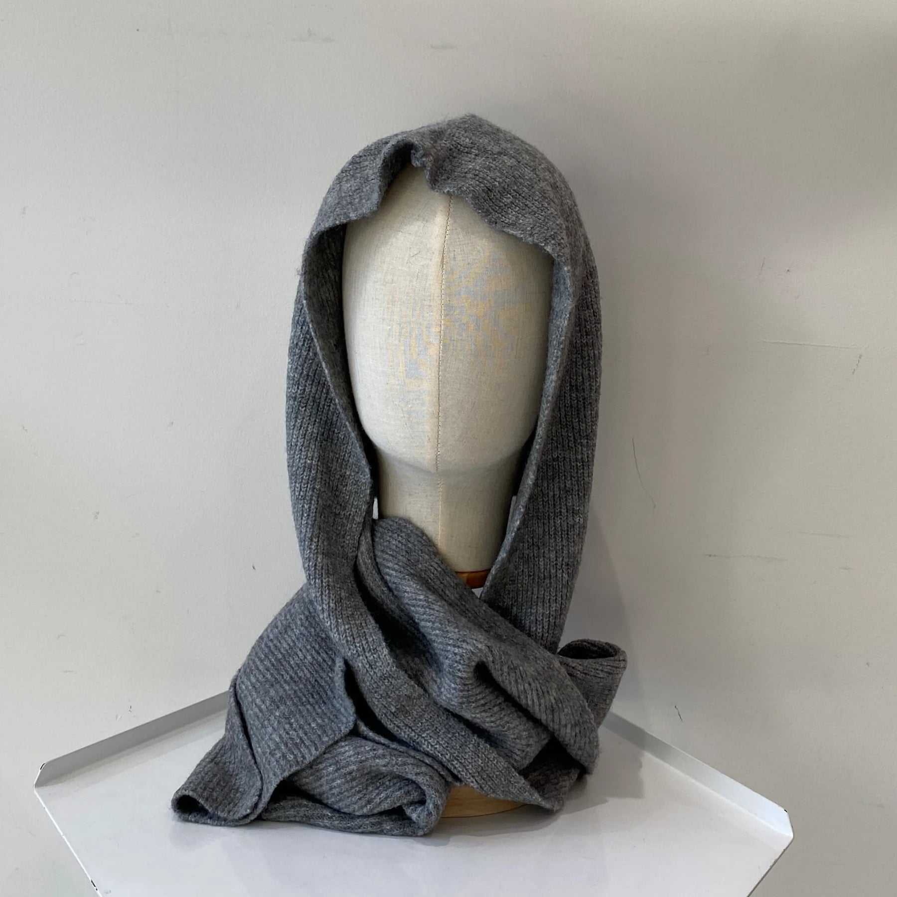 • もちもちニットの“フード付きマフラー”