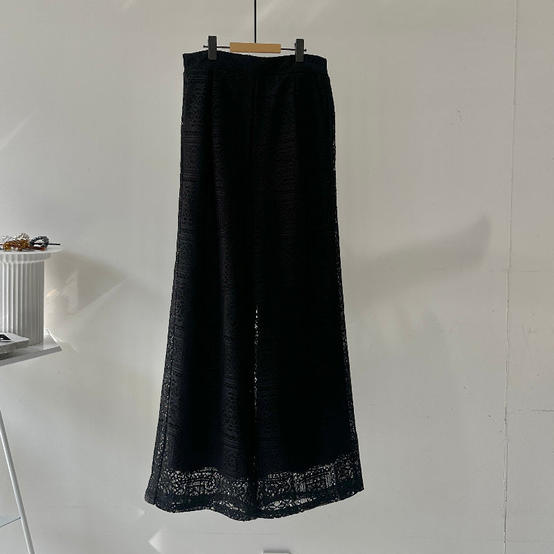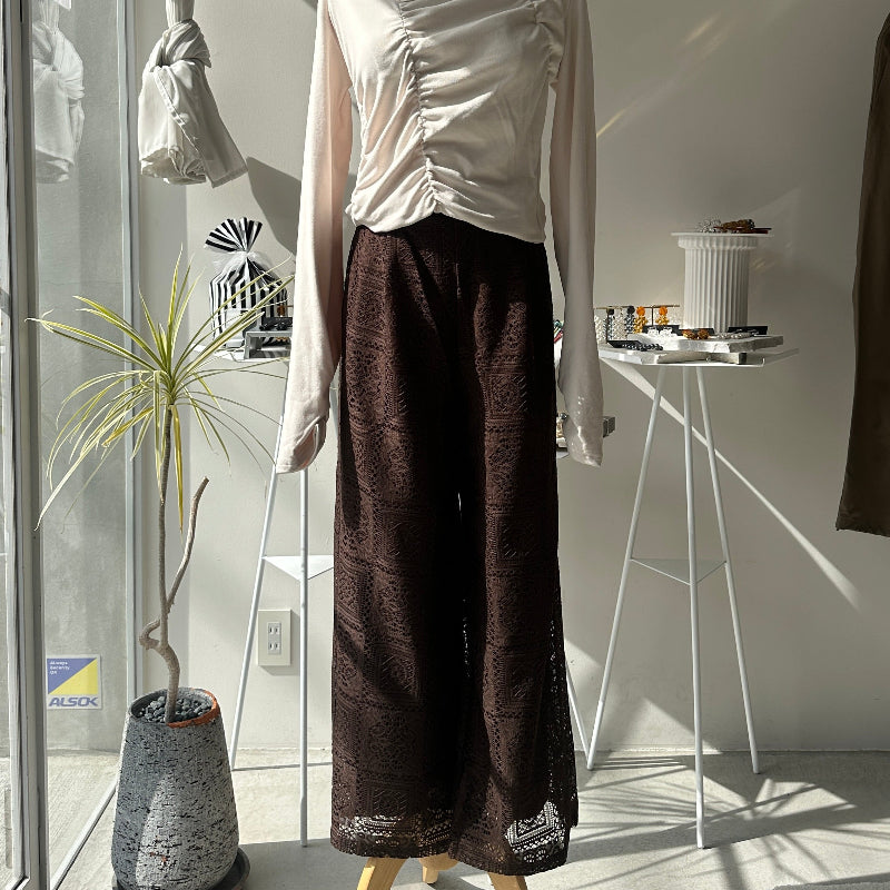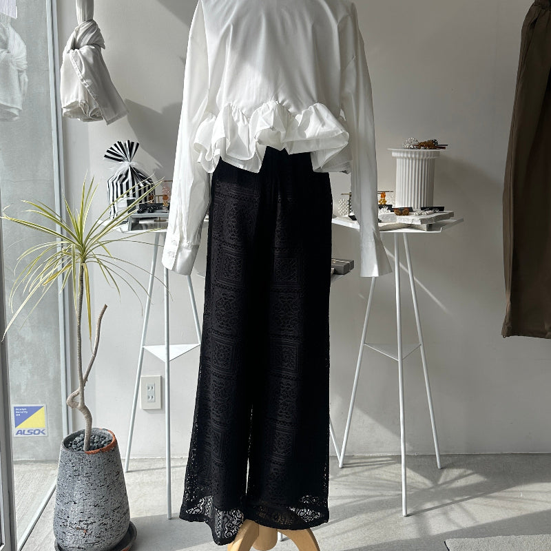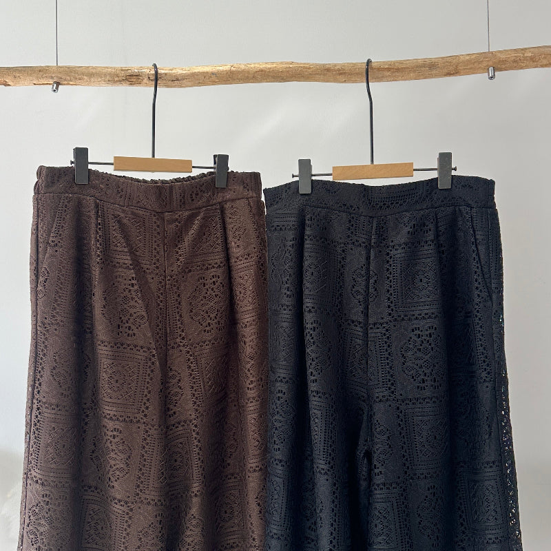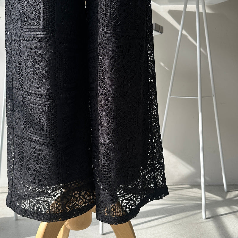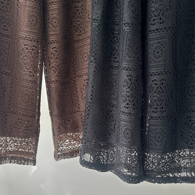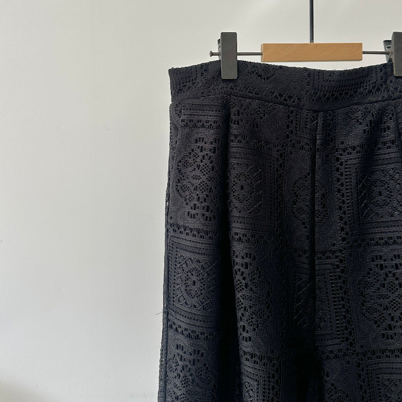 - 【ハモミシノオトナフク】Block Lace Straight Pants