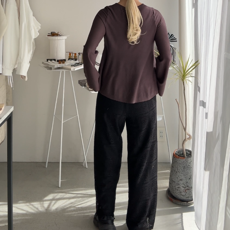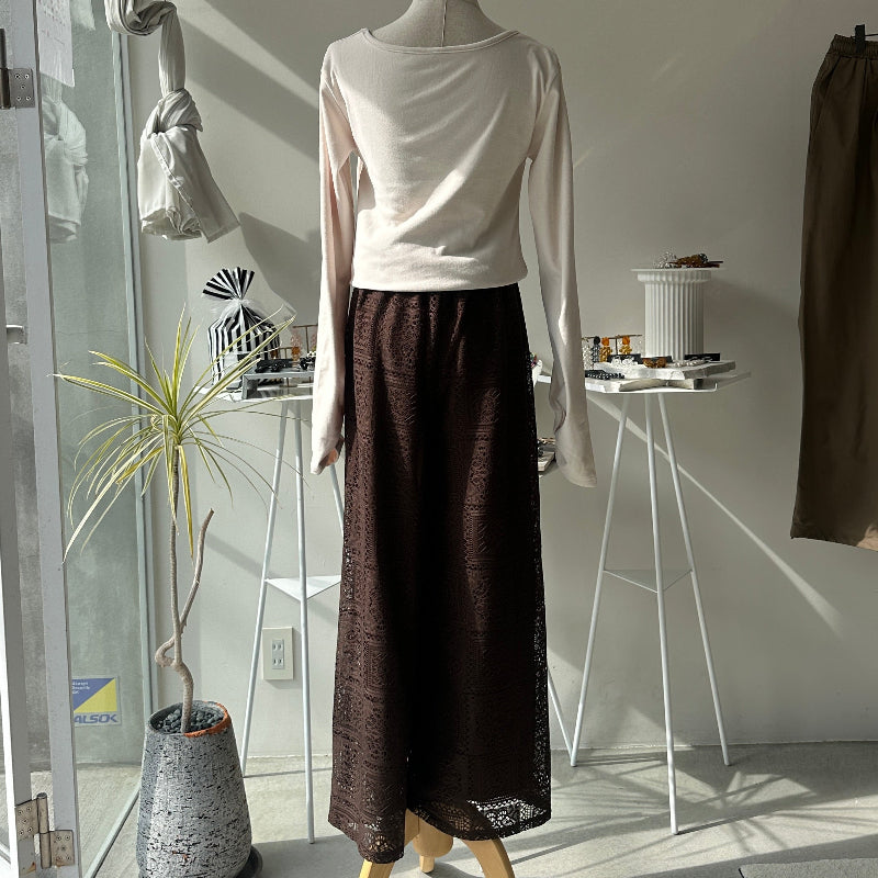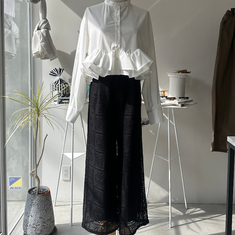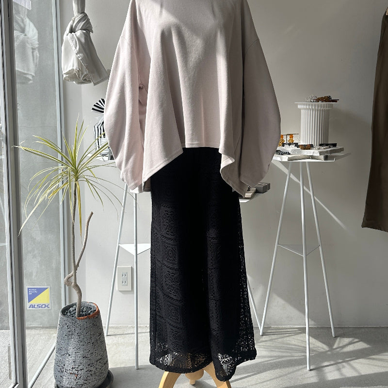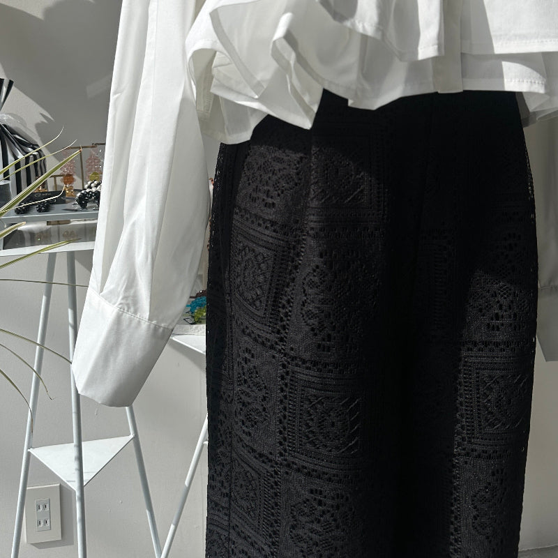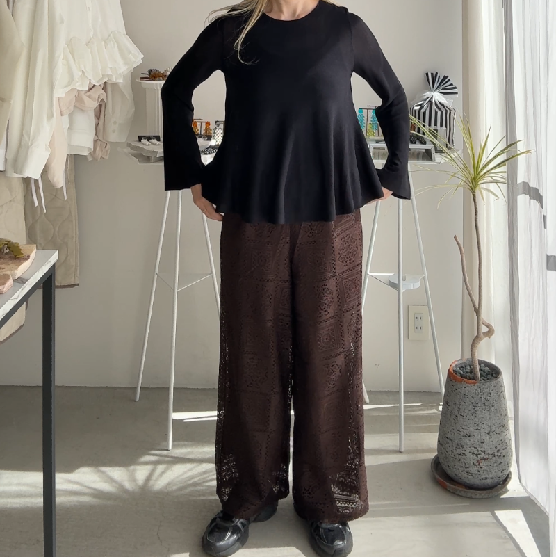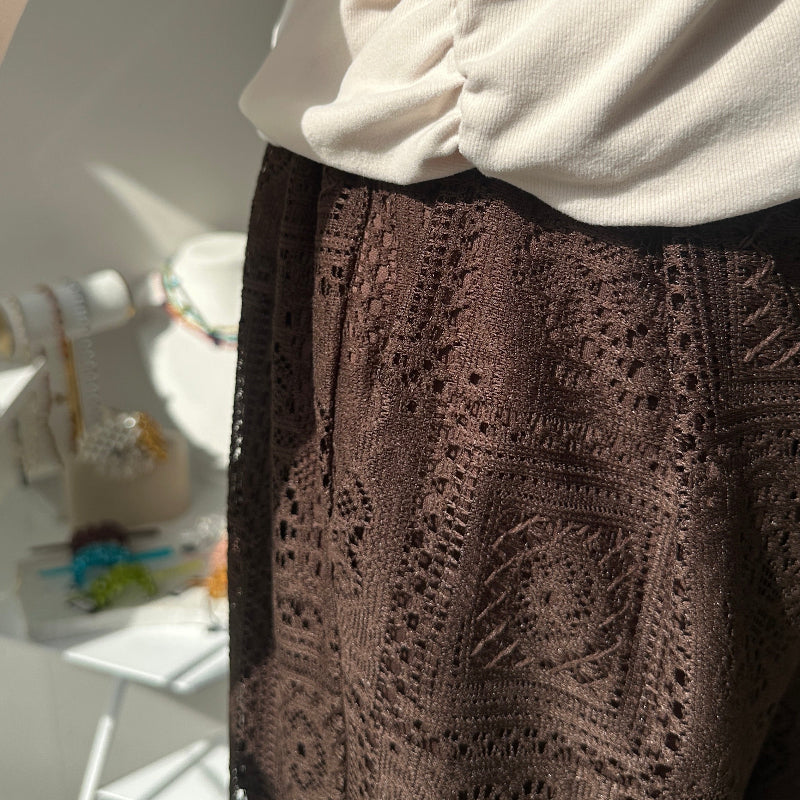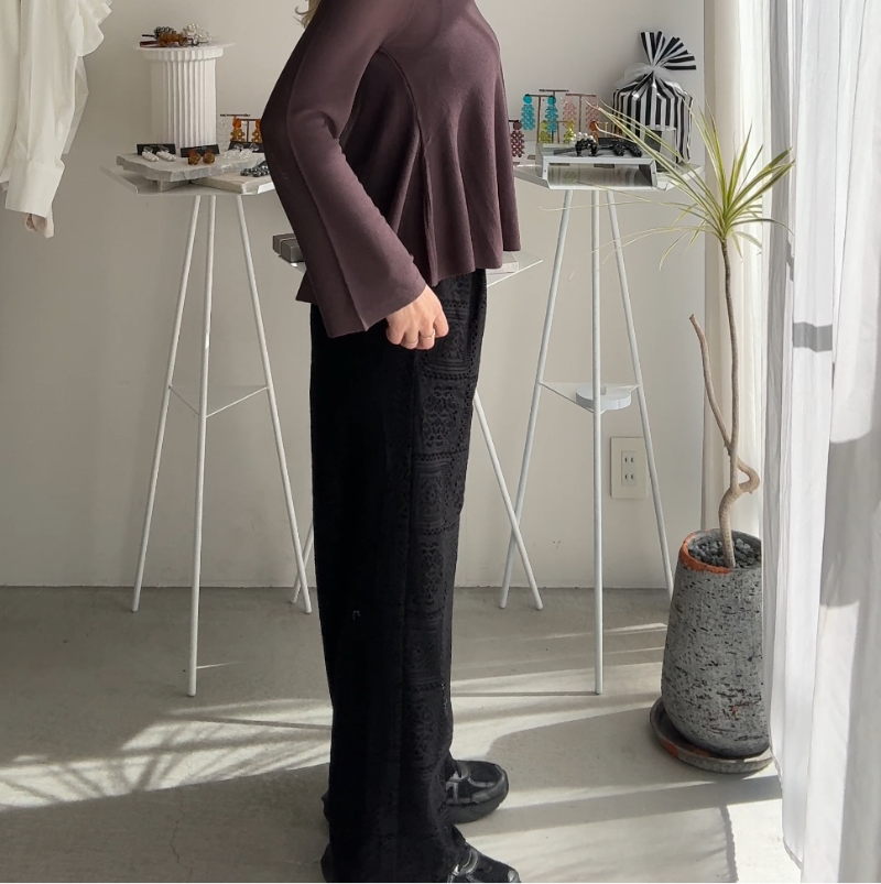- 【ハモミシノオトナフク】Block Lace Straight Pants