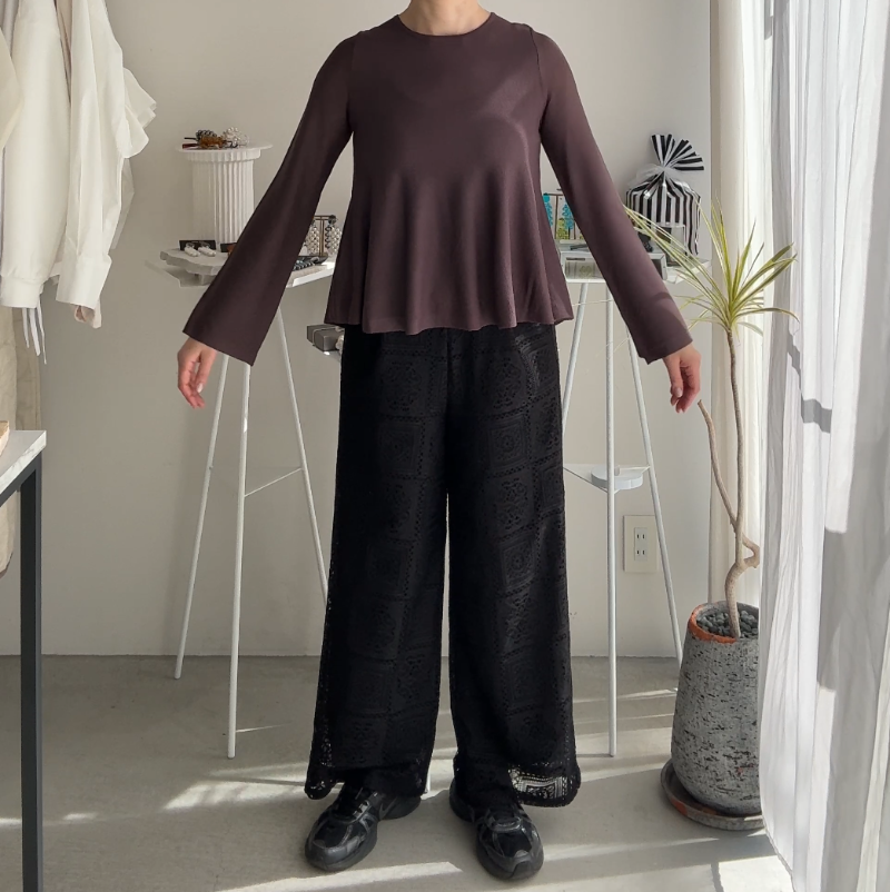 裏地付きで透け感を気にせず着用でき、きちんと感とリラックス感を両立。