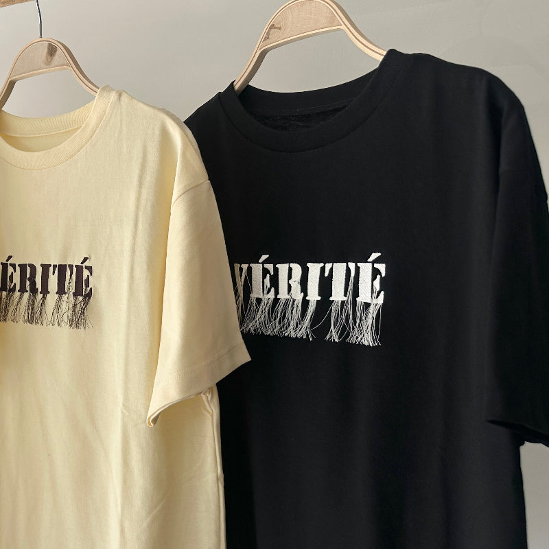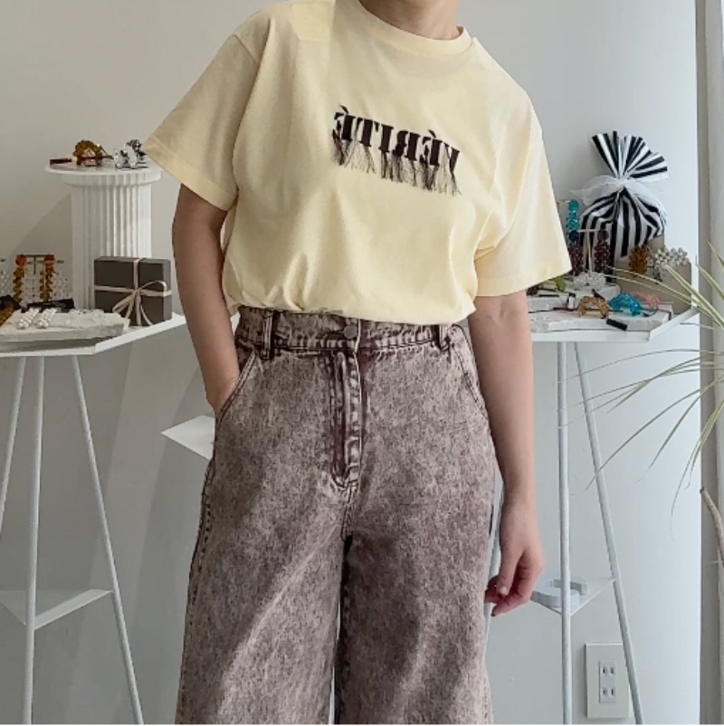 - 【ハモミシノオトナフク】Cool Touch Embroidered Fringe T-Shirt