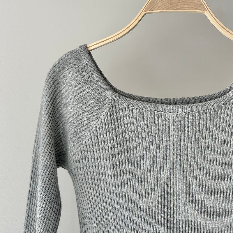 柔らかくフィット感のあるリブ編みで、きれいなシルエットを演出。