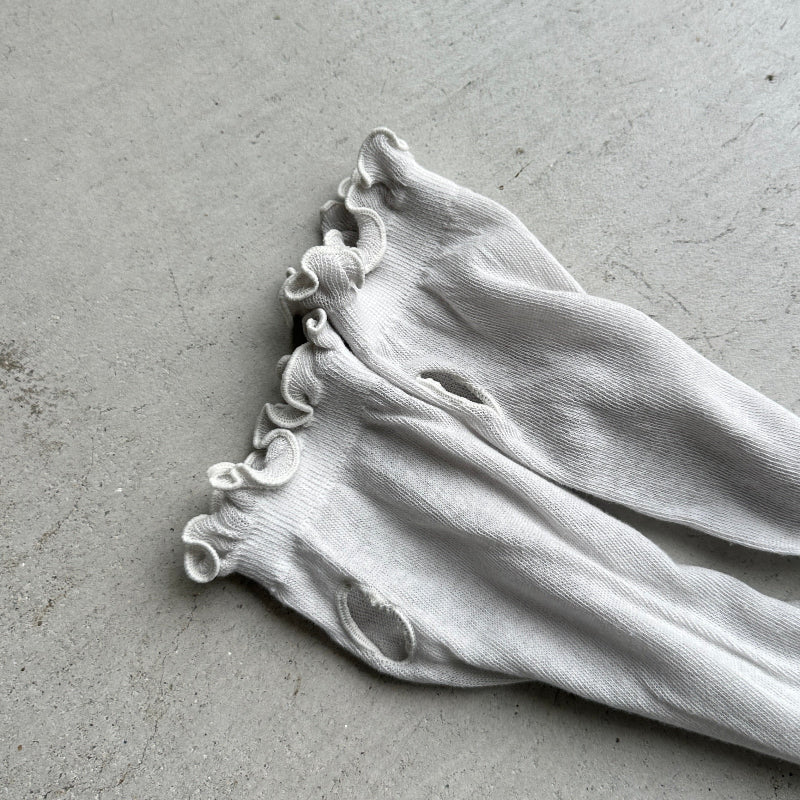 綿100%のゆる編みでやさしい着け心地、指穴付きで使いやすさも◎。